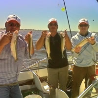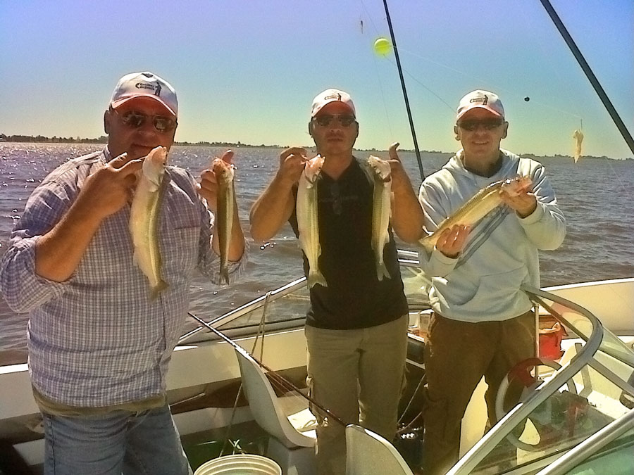 Excelente relevamiento realizamos en la laguna de Melincué, está situada en el sur de la Provincia de Santa Fe con 12 mil hectáreas, un profundidad máxima de 5 metros y con un nivel óptimo después de las fuertes lluvias del mes de Febrero y Marzo. Bien temprano en la mañana nos esperaba en el Club Náutico el guía Yuyo Gómez junto a amigos de esta ciudad, arribamos allí con Roberto Boronat y el chueco Serc ni bien arribamos nos embarcamos en una hermosa lancha que posee el guía, fuimos hasta el centro de la laguna y comenzamos un garete suave, las líneas chupetonas y yoyo con brazoladas de 10 a 15 cm, encarnando con generoso filete de dientudo, probamos con mojarras y no tomaron. El pique no fue sostenido en las primeras horas y había que estar bien atento a la corrida de las boyas porque tomaban y largaban inmediatamente, Los primeros portes fueron ejemplares que rondaron los 35 cm de longitud y sacamos algunos de hasta 45 cm, todos bien combativos y peleadores cuando los acercábamos a la embarcación. Con el correr de las horas se intensifico el viento y esto hizo que yuyo atinadamente moviera para ir adonde nacía el viento cerca del embarcadero, aquí el viento mermo considerablemente y seguimos pescando sin inconvenientes bien cercanos a la costa. Cerca de las 14 horas decidimos salir porque ya habíamos realizado la nota y acercarnos hasta el Club Náutico donde el intendente de Melincue Gabriel Rebora nos estaba esperando y degustamos así con varios amigos un exquisito asado. Les recomendamos contar con los servicios de Yuyo Gómez guía de esta laguna (tel. 03462-15-312532) y obviamente visitar esta ciudad donde nos olvidaremos del stress de las grandes urbes y podremos disfrutar de las bondades de la comuna de Melincue. Encontraremos un casino Resort de gran magnitud con dormís, una ciudad que tiene montada una gran insfractuctura para el turista y así podremos descansar en familia y vivir horas de tranquilidad y buena pesca. En nuestro programa de Hombres de Pesca TV verán las imágenes la próxima semana y hoy daremos un adelanto de lo acontecido en este lugar.